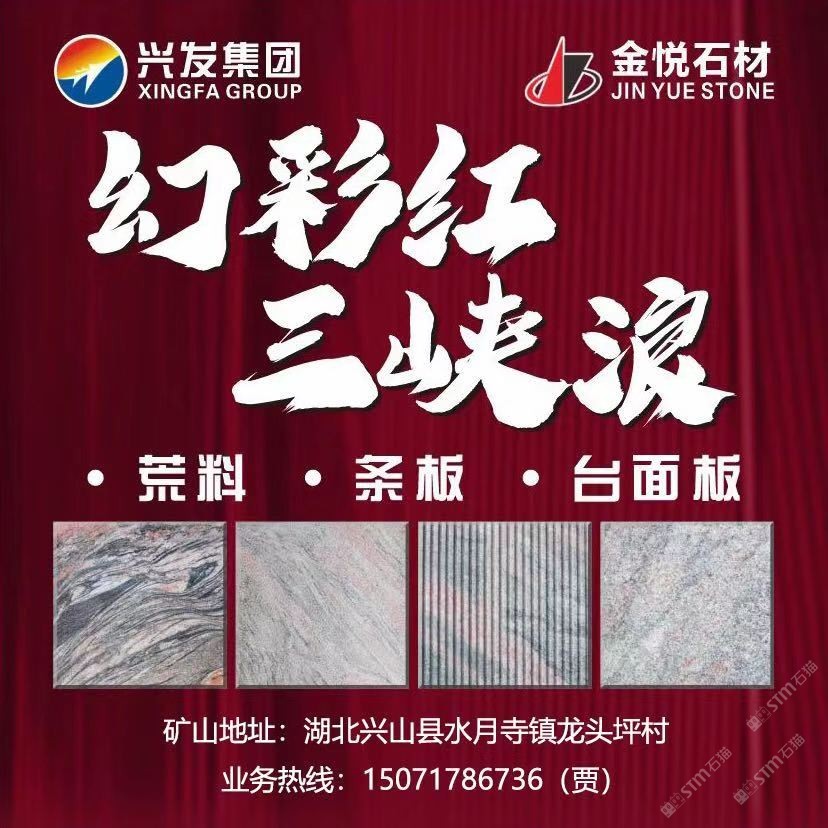 公司生產(chǎn)和銷(xiāo)售石材品種主要為三峽浪(幻彩紅、幻彩灰)、三峽紅、芝麻白(芝麻灰、芝麻黃)和夜藍(lán)星系列,特別是三峽浪和三峽紅品種,材質(zhì)好、花紋奇特,是國(guó)內(nèi)目前的生產(chǎn)地。公司主導(dǎo)建設(shè)的工業(yè)園距宜昌市興山縣峽口長(zhǎng)江碼頭40公里;距宜昌市貨運(yùn)火車(chē)站60公里;距宜昌市長(zhǎng)江集裝箱碼頭65公里,熱忱歡迎國(guó)內(nèi)外客商前來(lái)洽談合作,并誠(chéng)招代理商。