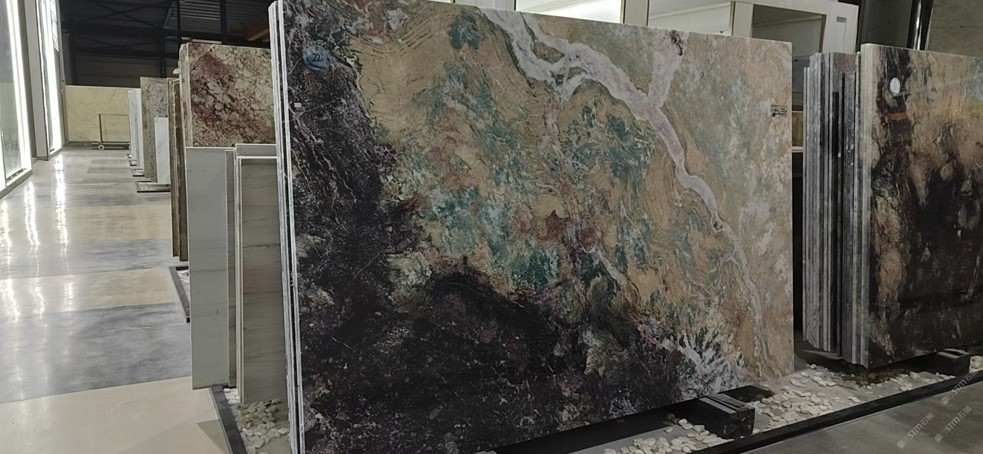 新景印象石畫館常年庫存玉石、奢石、山水畫,現(xiàn)貨大板近15萬平方,品種齊全,庫存豐富,可滿足不同客戶群各個價位板面需求。為客戶提供了更全面的選擇空間。未來,這里更將被打造成為華東地區(qū)天然背景石材選材中心。\