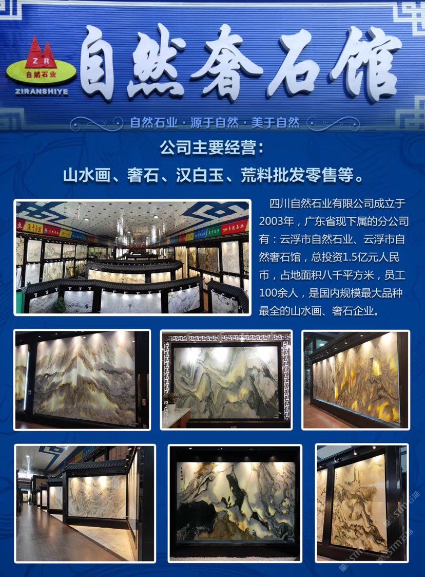 云浮自然石業(yè)有限公司,占地面積4.5萬(wàn)平方米,投資3.5億元,員工160余人,是目前國(guó)內(nèi)規(guī)模 品種多 專業(yè)的一家天然山水畫 奢石批發(fā)中心!