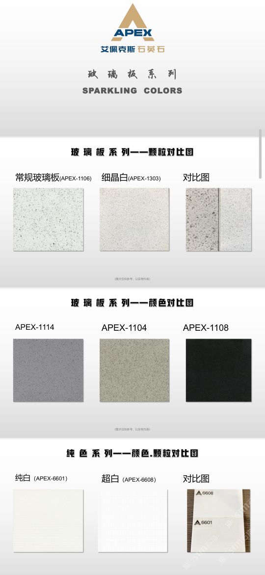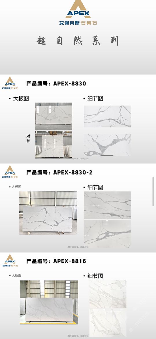 艾佩克斯秉承“精益求精”的開發(fā)理念,在人造石生產(chǎn)工藝上大膽突破,研發(fā)出更具特色的新石代石英石,色彩自然豐富,具有天然石材的質(zhì)感和美麗的表面光澤。產(chǎn)品具有刮不花、不污染、用不舊、燃不著、無輻射等五大特點(diǎn),可以廣泛用于公共建筑酒店、餐廳、銀行、醫(yī)院、展覽館、實(shí)驗(yàn)室等和家庭裝修廚房臺(tái)面、洗臉臺(tái)、廚衛(wèi)墻面、餐桌、茶幾、窗臺(tái)、門套等領(lǐng)域,是一種無放射污染、可重復(fù)利用環(huán)保、綠色新型建筑室內(nèi)裝飾材料。是的裝飾裝修材料。