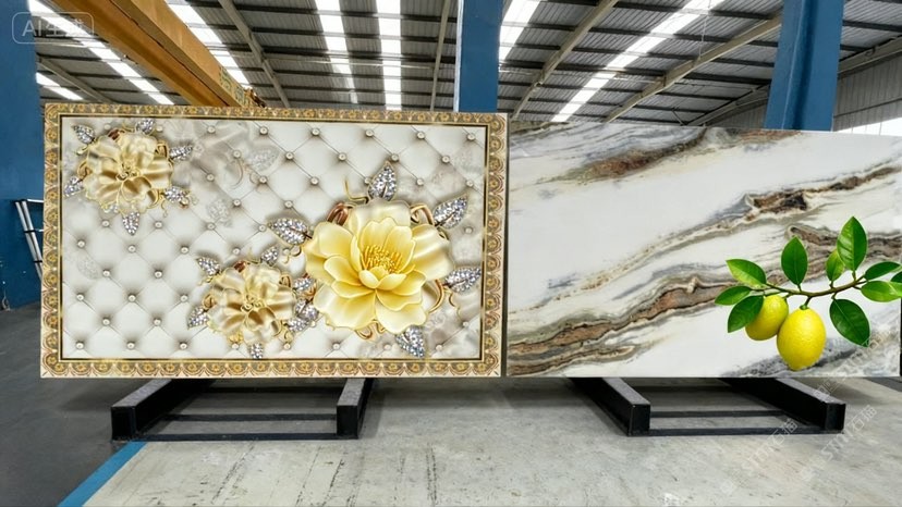 公司配有大板批發(fā)專場,同時擁有大型精加工廠房,其中各類加工器械完備,加工微晶石的工藝配套6000平方場地,并擁有建材行業(yè)各路精英成員。