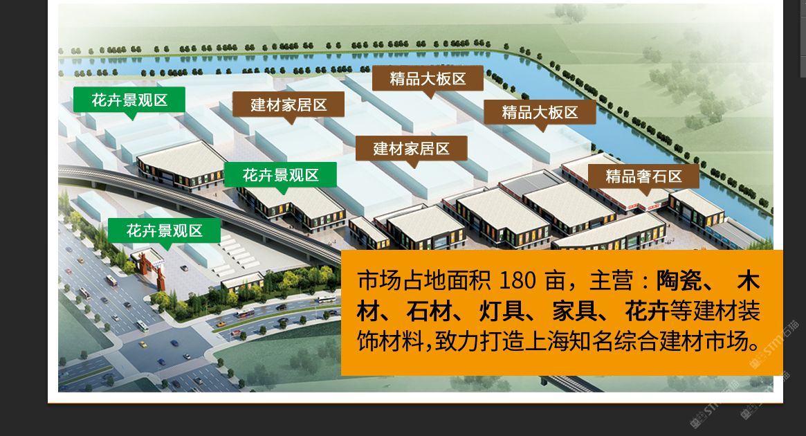 曹安路20年成熟市場,公司自有房產(chǎn)證,地處國際汽車城安亭鎮(zhèn),11號線國際汽車城站200米,附近住宅密集。自2000年開業(yè)以來,已吸引各地300多家廠商入駐,市場運營數(shù)十年,區(qū)域功能日臻完善,形成以陶瓷、衛(wèi)浴、木材、石材、家居等聚集區(qū),打造一站式建材家居市場,全方位建材體驗中心。 現(xiàn)增設(shè)石材精品館,石材采購基地。
