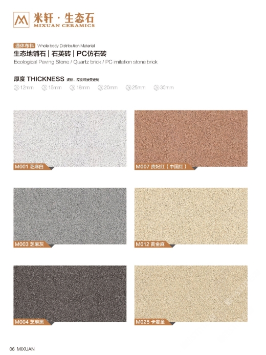 工廠主要生產(chǎn):PC磚、生態(tài)地鋪石,幕墻干掛仿石磚、園林景觀磚、石英磚等。