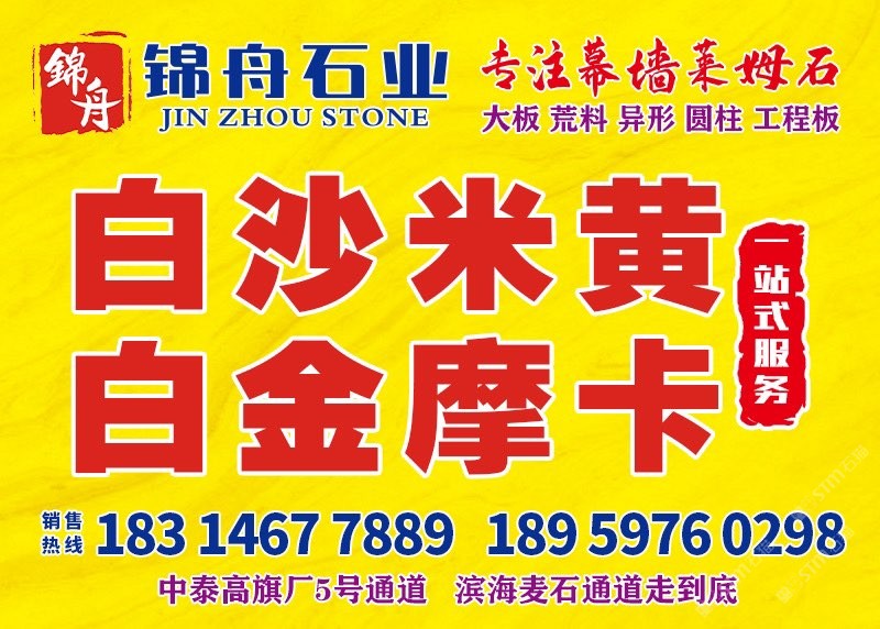錦舟石業(yè)主營:白沙,白沙米黃,百里香,香貝,月光米黃,貝金米黃,伊麗莎白,貝寧白白摩卡,白金摩卡,金摩卡,灰摩卡,維納多,沉香米黃,沙浪米黃等幕墻萊姆石材