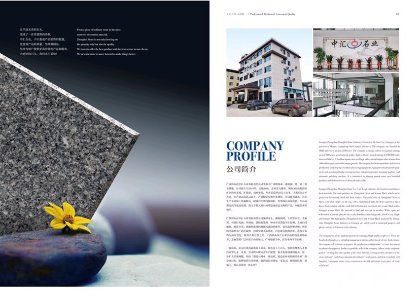 鐘山縣中匯石業(yè)有限責任公司坐落于廣西壯族自治區(qū)賀州市,地處湘、粵、桂三省交界地。公司創(chuàng)立于2019年,占地面積80余畝。企業(yè)實力雄厚,擁有300畝花崗巖礦區(qū)的開采權,礦質好、成材率高,年開采荒料10萬立方米,大板150萬平方米,年產值高達億元,產量穩(wěn)定實現連年增長。公司才能兼?zhèn)?,自有生產車間,加工設備精良。配備有紅外線橋切機、紅外線自動切邊機、全自動磨光機、定厚機、仿形機、雕刻機等先進設備,致力于將天然石材塑造成形態(tài)美觀的產品,奉獻給社會各界用戶。