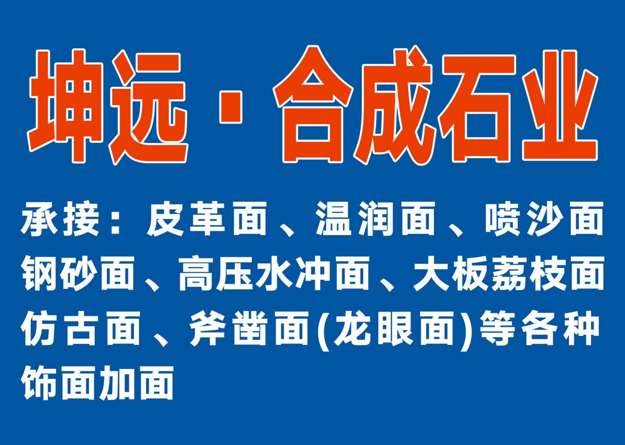 坤遠·合成石業(yè)噴砂皮革溫潤水沖 聯(lián)系人:石    137****4004 查看 186****0442 查看 主營范圍: 花崗巖加工、大理石加工、異型加工、石材工藝品、人造石加工、石材外貿(mào)、石材機械、 企業(yè)地址:福建泉州石井鎮(zhèn)中泰開發(fā)區(qū)