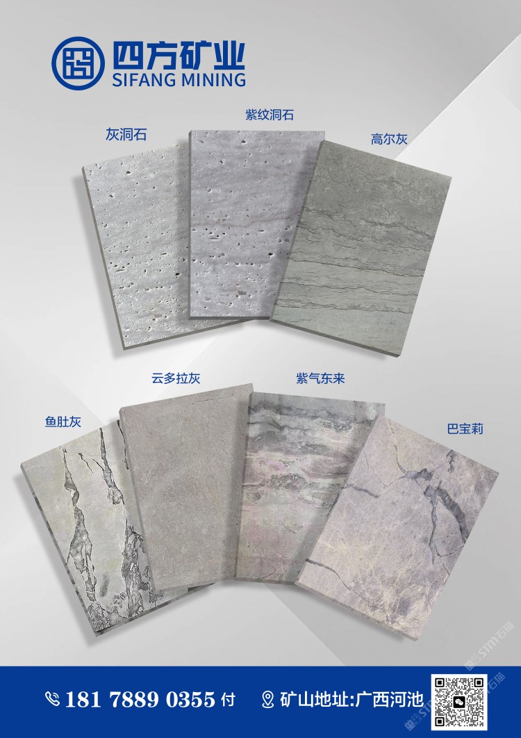 四方礦業(yè):云多拉灰紫紋洞石灰洞石高爾灰魚肚灰巴寶莉
