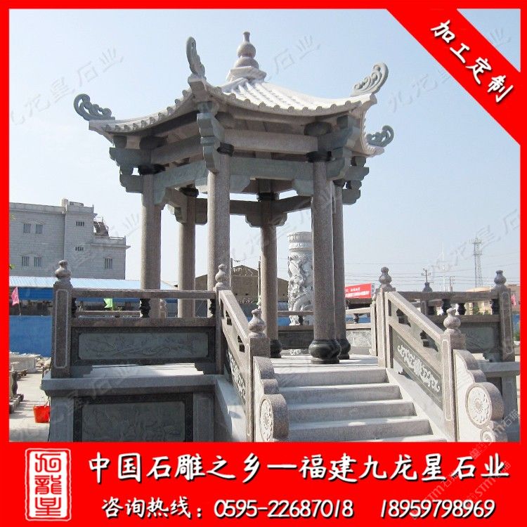 發(fā)布信息: 福建九龍星石業(yè)發(fā)展有限公司以“以誠為本、以質(zhì)取信”。從事石雕行業(yè)二十多年,石雕涼亭款式多樣,有四角石涼亭、六角石亭子、八角石雕涼亭,價格合理。石雕涼亭材質(zhì)可以為花崗巖、大理石等等,望廣大新老客戶前來參觀考察和選購(電話:18959798969)。 石雕亭子已經(jīng)成為城市園林和自然山水增添美色的重要點綴建筑物。既增加了園林的情趣,又豐富了園林的景觀。 石雕亭子風(fēng)姿獨具是特意為方便過往行人建筑的,山路從石雕涼亭中穿堂而過。園林石亭子的樣式,有四角的亭子、六角的亭子,八角形的亭子,扇形的亭子,還有雙層亭子和三層亭子之分。石雕涼亭在中國園林的意境中起到很重要的作用。