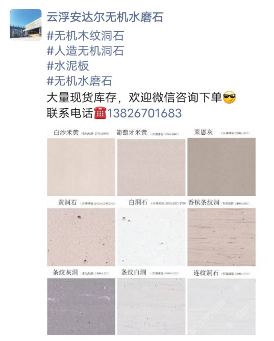 發(fā)布信息: #無機木紋洞石 #人造無機洞石 #水泥板 #無機水磨石 大量現貨庫存,歡迎微信咨詢下單[得意] 聯系電話??13826701683