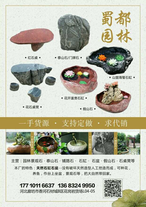 發(fā)布信息: 專營(yíng):泰山石、景觀石、天然石頭花盆水盆、鋪路石、假山石、石桌石凳等,一手貨源,支持定做,求代銷!!