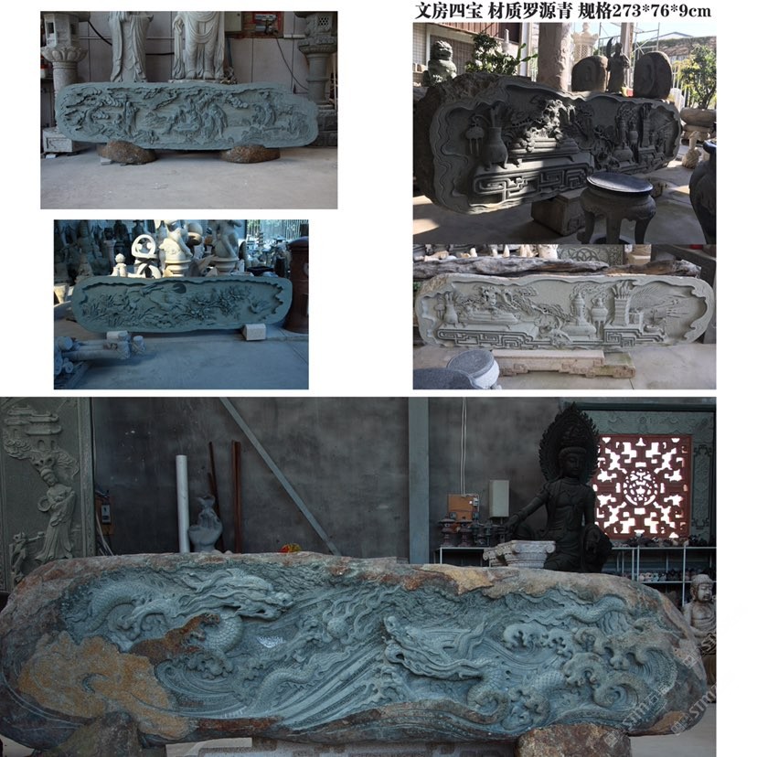 商圈 > 石雕 > 羅漢圖雙龍戲珠四季平安文房四寶羅源青浮雕壁畫照壁
