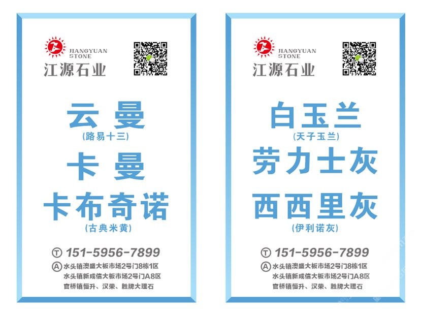 發(fā)布信息: 一條龍服務(wù) 高效[哇]便捷 云曼&路易?白玉蘭??拿鐵米黃??卡曼?卡布奇諾&古典米黃? 西西里灰?勞力士灰?星馳灰?云朵拉灰??意大利灰??伊利諾灰?? 水頭銷售點(diǎn):1??澳盛市場(chǎng)2號(hào)門8棟 2??新誠(chéng)信市場(chǎng)2號(hào)門A8區(qū) 3??恒升大理石 4??漢榮大理石 5??勝牌大理石 手機(jī)??:15159567899(微信同步)江源石業(yè)