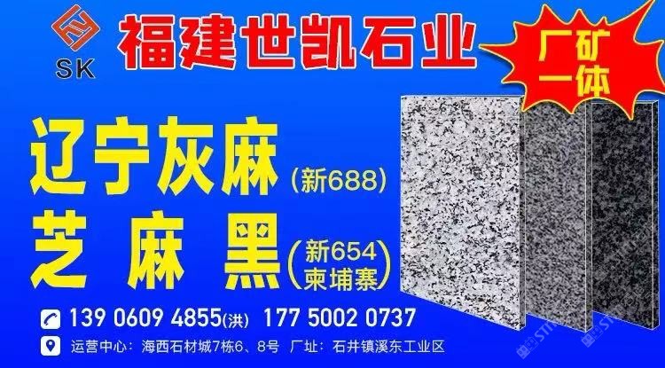 福建世凱石業(yè) 聯(lián)系人:洪先生    139****4855 查看 手機號碼:無 主營范圍: 大板批發(fā)、荒料、花崗巖加工、異型加工、礦山、 企業(yè)地址:福建泉州南安市水頭鎮(zhèn)海西石材城花崗巖7棟6-8號