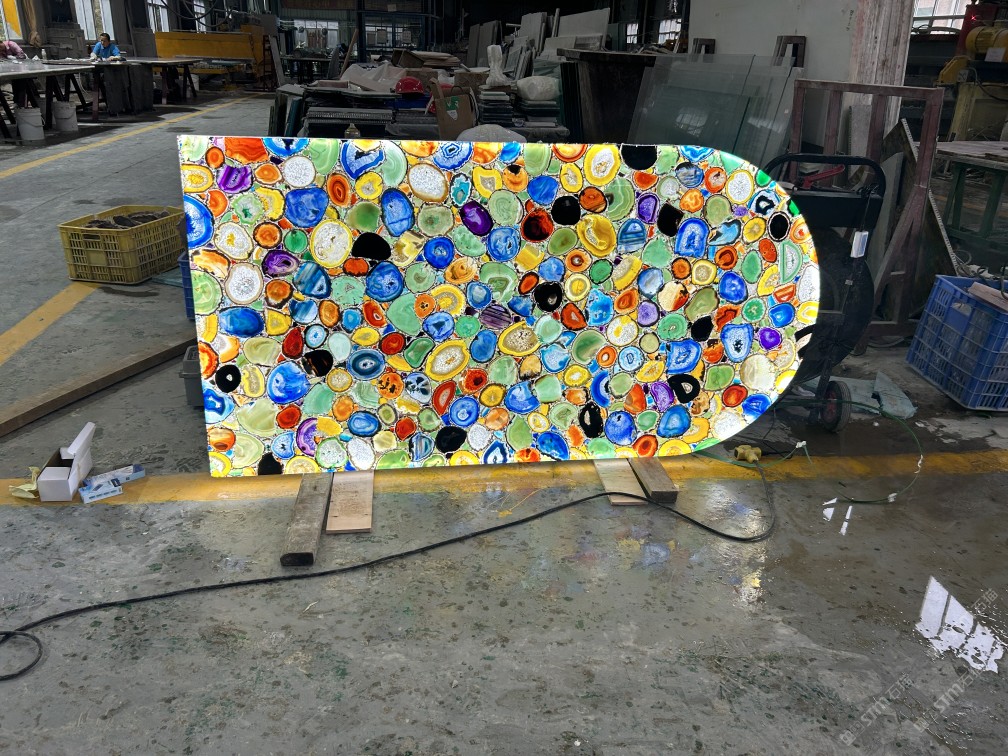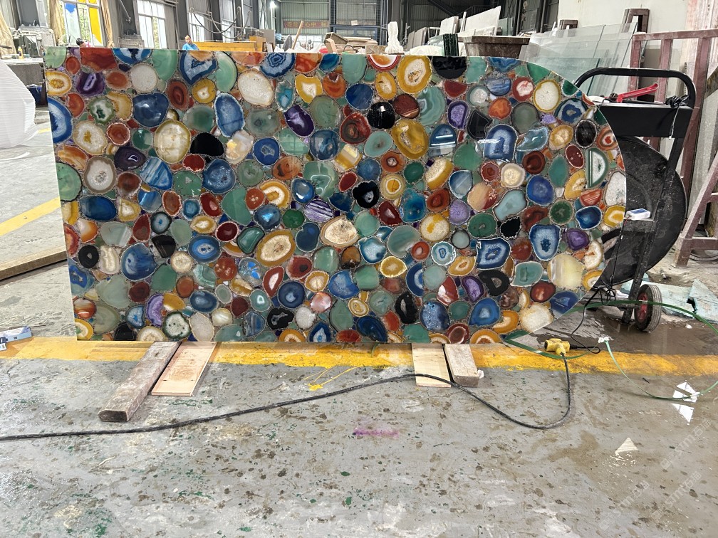 透光石材,混色七彩瑪瑙大板,定制尺寸