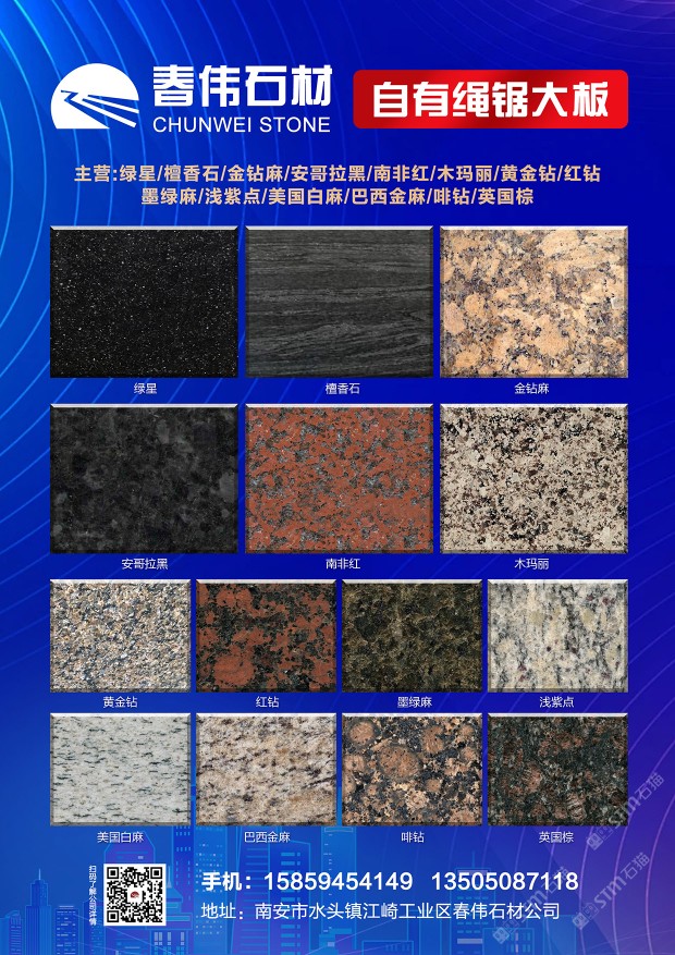 春偉石業(yè):印度紅/美國(guó)紅紫晶美國(guó)灰麻/繩鋸大板