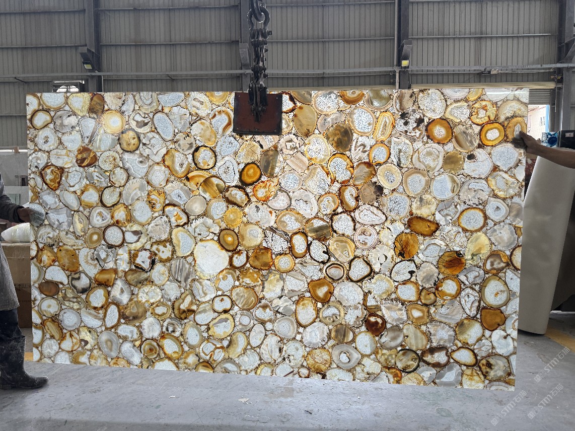 蛛絲黃瑪瑙大板,半寶石透光石材,棕色奢石