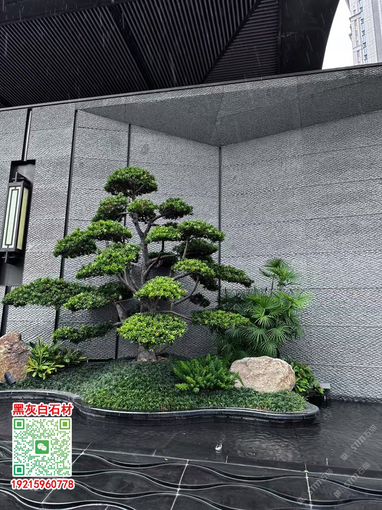 長泰芝麻黑流水面水景石長泰G654石材黑色流水幕墻
