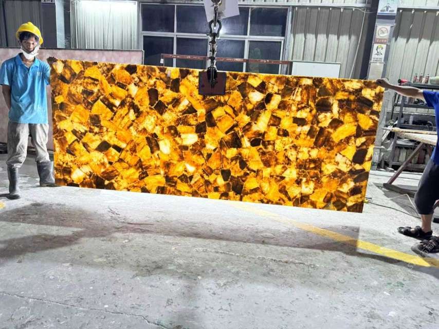 批發(fā)定制透光黃水晶寶石板,透光石,半寶石板材
