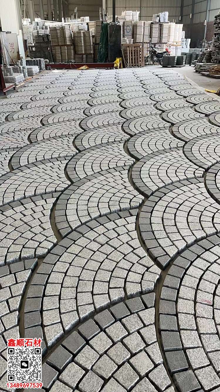 天然花崗巖扇形馬蹄石扇形網(wǎng)貼彈石小料石芝麻黑黃銹石