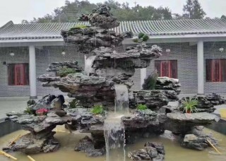 黑山石造景庭院假山流水效果