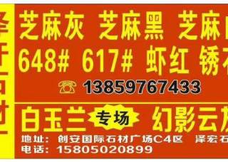 南安市雅柏石業(yè)有限責(zé)任公司主營產(chǎn)品:灰太狼(大花),灰太狼(黑線),灰太狼,灰太狼(小花),灰太狼(中花),黑郁冰花,大白玉蘭,雅柏1號企業(yè)地址:福建泉州南安市水頭鎮(zhèn)福山工業(yè)區(qū)瑞剛廠內(nèi)