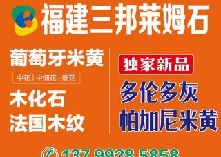 超石集團(tuán)?水頭外墻專場主營產(chǎn)品:葡萄牙米黃,城堡米黃,沉香米黃,德國紅砂,貝魯特,撒哈瑪,保利沉香,新月光(貝金沙),貝金沙,白蘑菇,白沙(粗沙),金碧,金線,埃及米黃,莎安娜,爵士白,奧特曼,云朵拉灰,水晶淺啡,淺啡網(wǎng),撒哈瑪(白底),新西米,莎安娜米黃,新莎安娜,埃及米黃1,撒哈瑪(圓花),米蘭雅白,貝金米黃,白沙米黃,胖子灰,亞洲米黃1,維納多,月光米黃,維納灰,木化石,木化石(塔星礦),木化石(GAB礦),木化石(細(xì)花),木化石1,木化石(摩卡礦),木化石(粗花),木化石白底,木化石細(xì)花,法國木紋,溫莎米黃,雨果石(萊姆石),楓丹白露,葡萄牙米黃1,白沙米黃(中細(xì)沙)企業(yè)地址:福建南安官橋鎮(zhèn)南聯(lián)工業(yè)區(qū)超石集團(tuán)